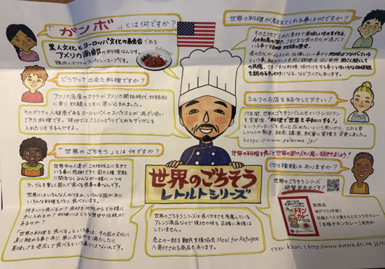 世界の文化や背景を伝えるためにレトルト食品のパッケージの内側にニュースのように情報がぎっしり詰まっています。食べるだけではない楽しさがレトルトに込められていて、とても素敵な伝え方だと感じました。